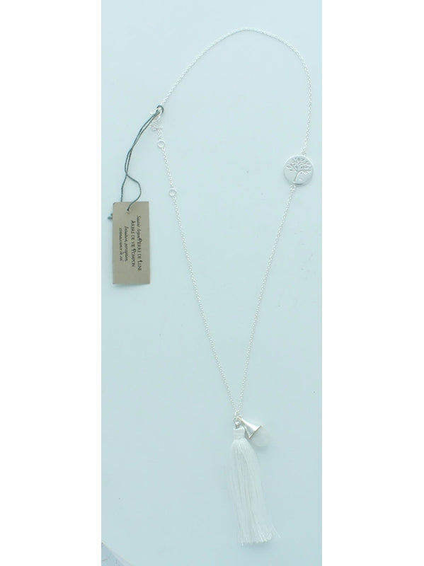Ce superbe collier en Argent est composé d'un pendentif goutte en Pierre de Lune. La Pierre de Lune apporte de l'intuition, la perception et la connaissance de soi. Il est également composé d'un pompon blanc assorti et d'un Arbre de Vie symbole universel qui apporte protection, force et sagesse. Longueur totale de la chaine : 48 cm - Hauteur Goutte Pierre de Lune : 1,4 cm - Diamètre Médaille Arbre de Vie : 1,5 cm - Hauteur du Pompon : 5 cm. V