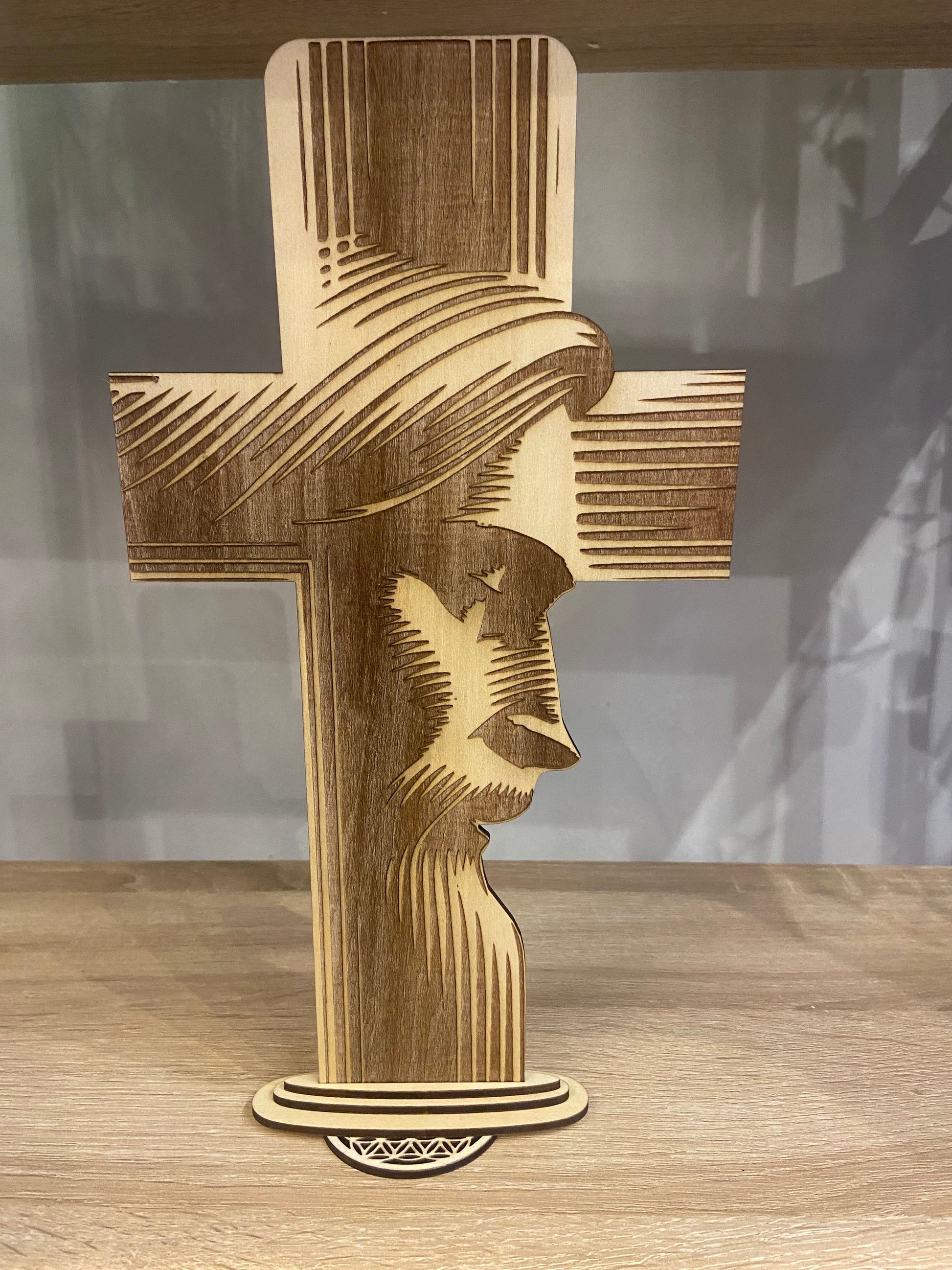 Création Artisanale en Bois de Tilleul représentant le Visage du Christ sur la Croix.