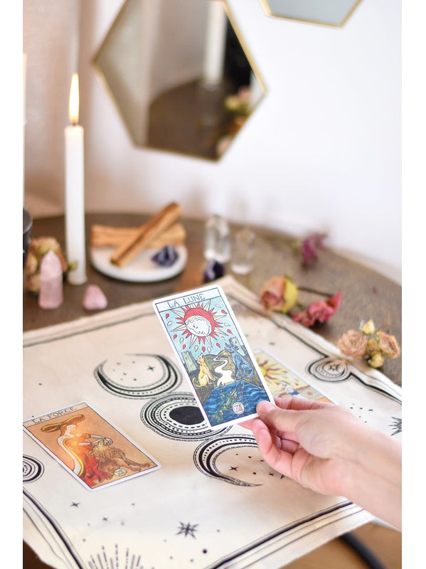Nappe d'autel en coton OEKO TEX motif Triple Lune. Dimensions : 40 x 40 cm.