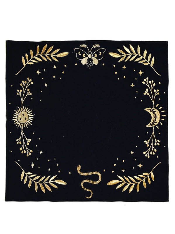 Accessoire indispensable pour les tirages de carte, la nappe permet de délimiter son espace de divination lors des séances. Idéale pour réaliser ses tirages d'oracles et de tarots, elle peut également servir lors de la pratique de ses jeux de cartes favoris. Son toucher velours permet de réaliser tous les tirages dans un grand confort. Les broderies dorées puisent leur inspiration dans les énergies de la Terre-Mère et dans la magie des éléments naturels. Il ne reste plus qu'à écouter attentivement ce que les cartes ont à révéler...